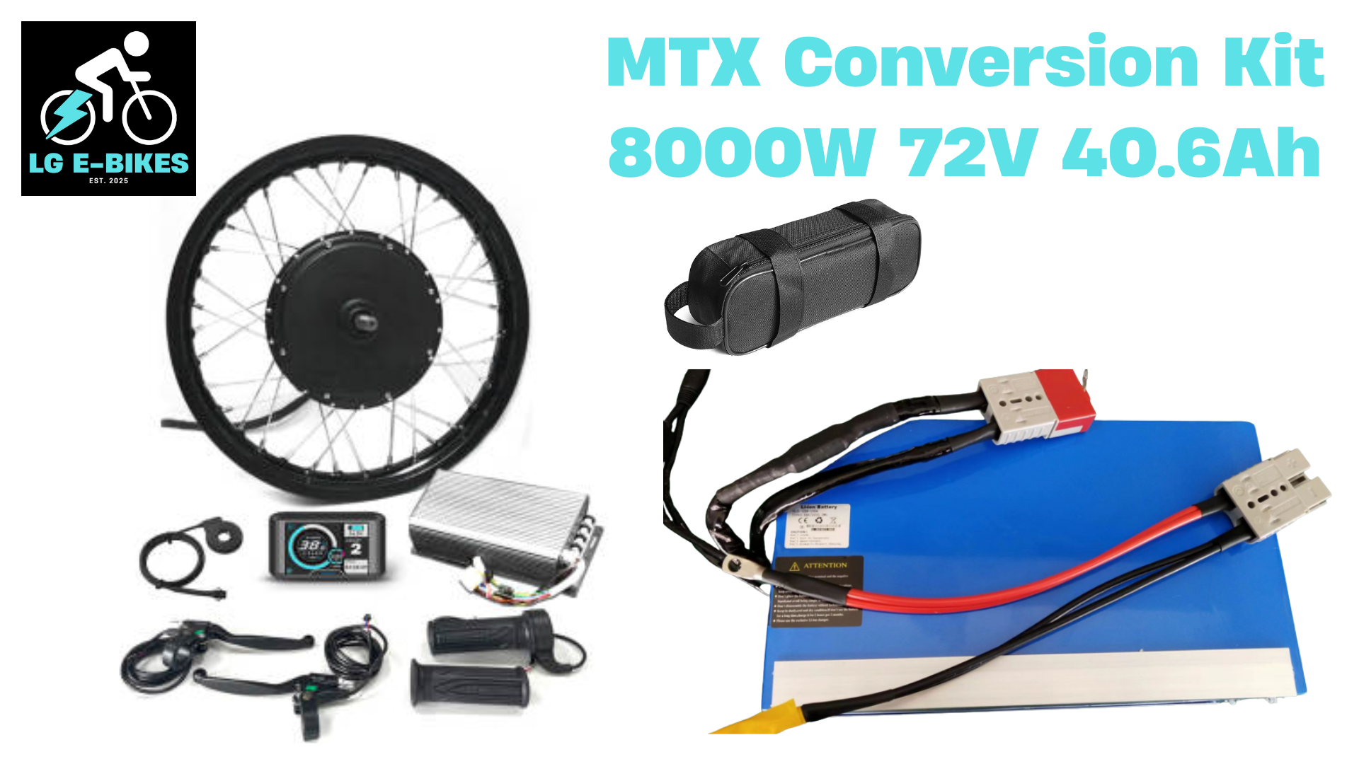 Upgrade your ride with our all-in-one 8000W conversion kit, designed for performance and durability. This kit features a high-torque 8000W hub motor built into a reinforced and strengthened rim, delivering smooth power and strength on every ride.